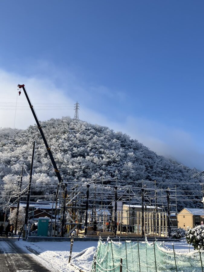 雪景色の中の上棟となりました⛄